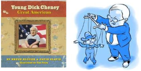 Alternet.org, April 25, 2008 Dick Cheney: Devil's Spawn? .A new book takes a hard look at the youthful hi-jinks of our quick-shootin' Veep. By Bruce Kluger and David Slavin What do Arianna Huffington, Keith Olbermann, Lewis Black, Phil Donahue and Mel Brooks have in common? They all love Young Dick Cheney. Not the grumpy old Prince of Darkness, socked away in his secured, undisclosed location somewhere near Washington—but the adorable and misunderstood hero of our brand new book. One year in the making (call it "elephant labor"), our bouncing baby boy—the one with the premature comb-over and peculiarly crooked mouth, who would one day grow up to be the most powerful Dick ever to inhabit the Vice Presidency—was delivered this week...to bookstores across America. Exploding cigar, anybody? Arianna calls Young Dick Cheney "a double-barreled blast of satiric buckshot." Phil calls it "a page-turner and a side-splitter." Keith recommends you "bring it with you to Gitmo." And Lewis says, "If you've spent the last eight years gagging on Vice President Cheney and his hijinks, this should take the bad taste out of your mouth." In a recent email exchange, Arianna proposed that we celebrate the publication of our irreverent little book by blogging here about its themes. But the theme is pretty simple: we give a deserved poke in the eye to Richard Bruce Cheney, a man who has almost single-handedly steered this nation into a sinister, darkly lit alley, dragging our historic liberties and freedoms behind it like so much roadkill. But on further reflection, there is another aspect to Young Dick Cheney that bears mentioning: When we first began working on the book in 2007, publishing "experts" warned us not to bother. "The quickest you can get your book out will be spring of 2008," they said, "and by then George Bush and Dick Cheney will no longer be relevant." Huh? Not relevant? Just a couple of weeks ago, the Associated Press reported that Bush administration officials, from Dick Cheney on down, signed off on using harsh interrogation techniques against suspected terrorists after asking the Justice Department to endorse their legality. A few days later, we learned that the Vice President and his wife, Lynne Cheney (who also figures into our book—in a most unflattering light) reported a taxable income of $2,528,068 in 2007—a year in which the American economy slid haplessly into a drainage ditch. And last Friday, we saw New Hampshire State Representative Betty Hall (D- Brookline)—joined by, among others, former military analyst Daniel Ellsberg and former U.S. Attorney General Ramsey Clark—urge the state legislature to back House Resolution 24, calling for the impeachment of President George W. Bush and Vice President Dick Cheney. We may be just a couple of satirists, but we know relevant when we see it. Meanwhile, as word about our book has begun to spread in the blogosphere (thank you all), we're getting a fairly good idea that we made the right choice: When a right- wing apologist-blowhard like Jonah Goldberg starts trashing our book five weeks before its release, you know we've hit a nerve. As the proud parents of our precious, portly bundle of evil, we invite you to take a sneak peek at Young Dick Cheney's first baby movie, now showing on YouTube. And, sure, while you're at it, we hope you'll treat yourself to a copy of our book, and maybe even grab a few for your friends. Get your foot ready for the biggest kick out the door of our nation's history. And enjoy our book. After all, with the countdown to January 2009 finally underway, it's safe to laugh again. [Young Dick Cheney is illustrated by Tim Foley, and published by AlterNet Books.] (Click here to read online version.) |