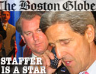doppelgangers on the Dean and Clark campaigns during primary season; now that Kerry has a lock on the nomination, the native Canadian has become a series favorite. His name and photo lead the opening credits; in a recent episode, he was featured at full tilt—working the rope lines with Kerry, escorting him to stump speeches, and sating his regular cravings for peanut butter and jelly sandwiches. "Marvin is funny, smart, and engaged," says Staffers director Steve Rosenbaum, "but more importantly, through him we get to see a side of John Kerry, the person, that would never make it into the mainstream media. No, making a sandwich for a candidate is not newsworthy. But it is fabulously human." Born in Toronto and raised in Victoria, British Columbia, Nicholson found his way to the States after college, following a girlfriend to Massachusetts. Like many other postgrads, he bounced among odd jobs—bartending, lots of golf course gigs— eventually landing in a Boston surf and ski shop in 1998, where he tried to sell Kerry windsurfing equipment. The two men hit it off, and since then Nicholson has been a permanent fixture in the Kerry camp. Refreshingly modest despite his newfound celebrity (this is, after all, a man who at 6 feet 8 inches is four inches taller than Kerry, but frequently slouches to give the senator the altitudinal edge), Nicholson talked to the Globe about his unconventional role in the Kerry campaign. Q. The concept behind Staffers is that you can judge a guy by the people he surrounds himself with. In other words, viewers can learn about a candidate by getting to know his staffers. Would you say that's true in the case of you and Senator Kerry? A. Well, you have to remember that this is man I met in a snowboarding shop, so we have a very unusual relationship. I've been his driver and his caddy. I'm the first person he sees when he gets up in the morning and the last person he sees before he goes to sleep. We're more like friends than anything else. So, yes, if you're going to judge the candidate by his staff, you can say that John Kerry likes to surround himself with all kinds of people. There are career politicians, there are experts, there are academics. And then there's me. Q. On the show, you make an effort to play a regular guy whose job is strictly apolitical. But here you are at the heart of a major campaign. Do you care about politics at all? A. I like to say, " don't do the politics; I just make the sandwiches." But, yes, I certainly care more about politics than I ever did before. Remember, I spend my days around people who are constantly talking about all these important issues - education, the environment, jobs—and while I'm not there to be a politician, I do hear all the conversations. That kind of access has educated me. It's funny: I used to b.s. my way through cocktail party conversations. Now I can sometimes actually have real discussions. Q. Word has it you possess a Saturday Night Live sense of humor. Does Senator Kerry appreciate that? A. I would hope so. I sometimes think that's the whole reason I'm around: to lighten things up a bit. Like if the day is going rough and everyone's tense, I'll wind up spilling a milkshake on myself, and that will make the senator smile. I don't do this stuff on purpose—it just happens. Q. Staffers has featured clips of one particular sport that takes place on the campaign plane: the orange-rolling competition. Once and for all, what's that all about? A. I'm not sure when it started—I think it was around the time of the Iowa caucuses— but now it's grown into this whole big tournament. The idea is to see who can roll an orange down the aisle of the plane the furthest without it banging into a seat. The senator's gotten pretty good at it, but I'd have to say the reigning champ is our press wrangler, Jim Loftus, who consistently gets it all the way to the back wall. He employs this whole reading-the-green strategy, like in golf. He definitely has finesse. Q. You've often said you work eight days a week, 18 hours a day. What do you miss the most about your old life? A. Going out with my girlfriend. Going to the movies. And sleeping! I used to be a professional sleeper—I could go 10 hours straight without waking up. These days if I grab four hours, I wake up feeling like I've had a full night's sleep. Q. If John Kerry wins the presidency, how do you envision your role in the White House? A. I'll tell you how I explained it to my mother. I said, ``You know that guy on The West Wing, that character Charlie [Dule Hill] who's always there whenever the president needs him? Well, that's what I'll be in the White House. I'll be John Kerry's Charlie.'' |